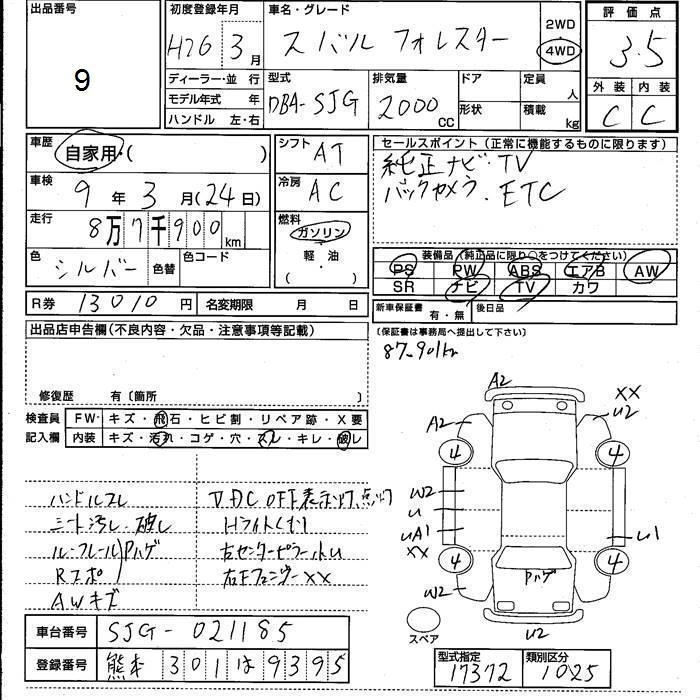 SUBARU FORESTER 2014 г., лот № 9