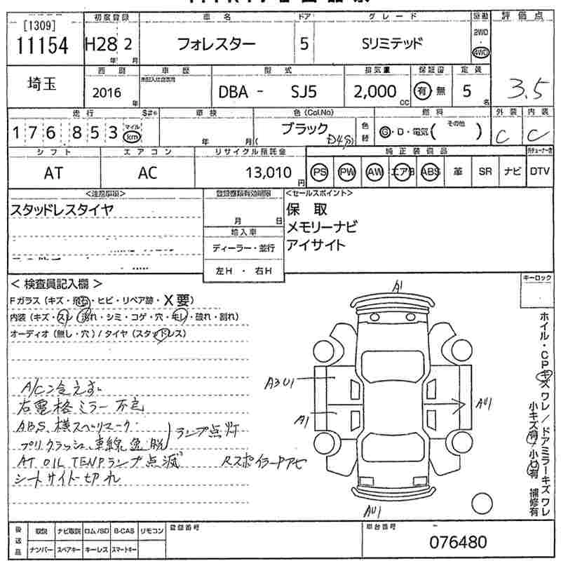 SUBARU FORESTER 2016 г., лот № 11154