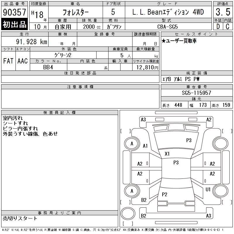 Год выпуска2006 Пробег 92 000 км КузовSG5 КомплектацияL.L.BEAN EDITION 4WD