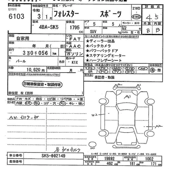 SUBARU FORESTER 2021 г., лот № 6103