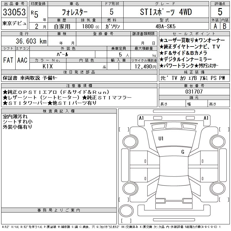 Год выпуска2023 Пробег 37 000 км КузовSK5 КомплектацияSTI SPORT 4WD