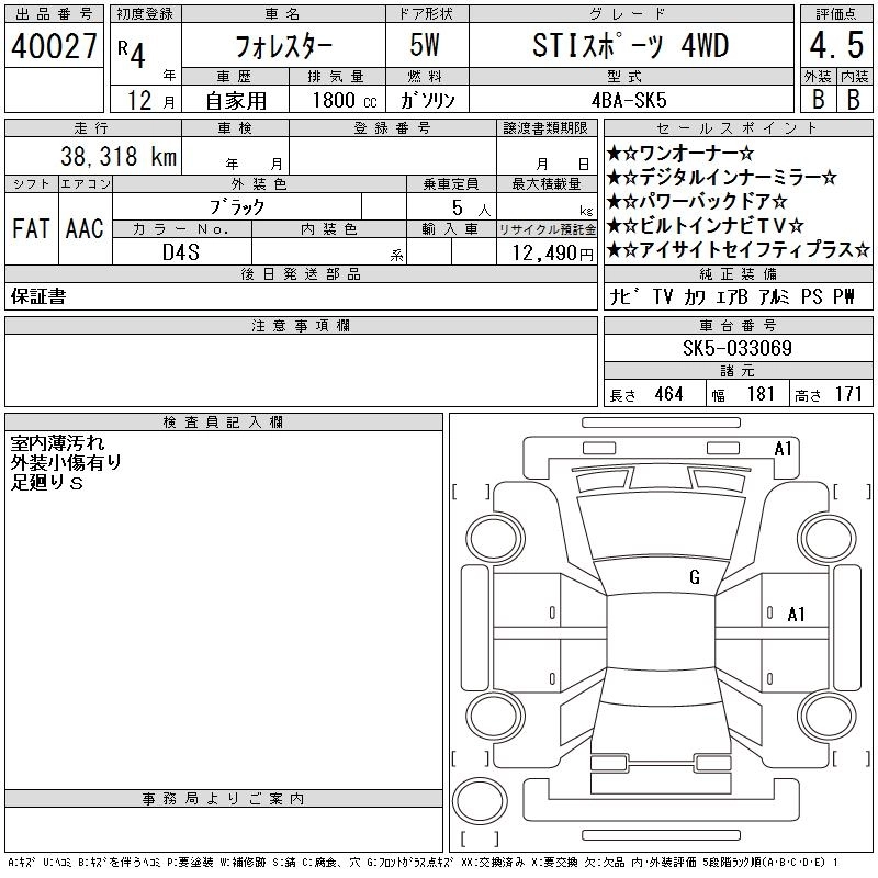 Год выпуска2022 Пробег 38 000 км КузовSK5 КомплектацияSTI SPORT 4WD