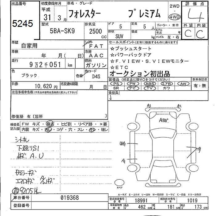 SUBARU FORESTER 2019 г., лот № 5245