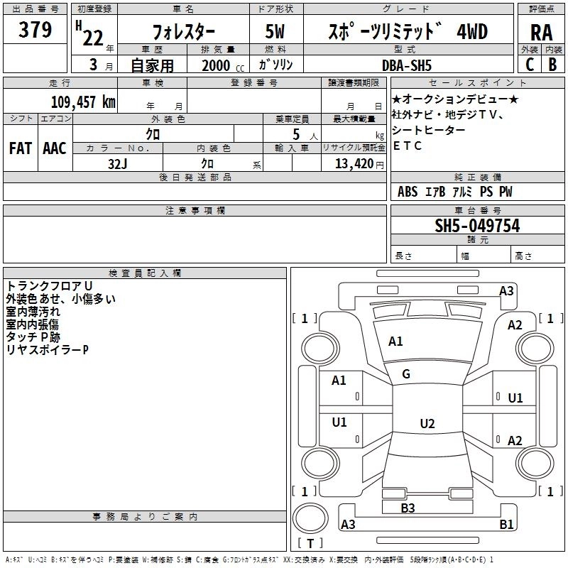 SUBARU FORESTER 2010 г., лот № 379