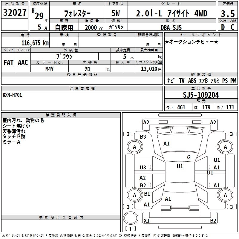 SUBARU FORESTER 2017 г., лот № 32027