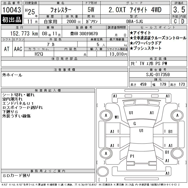 Год выпуска2013 Пробег 153 000 км КузовSJG Комплектация2.0XT EYESIGHT 4WD