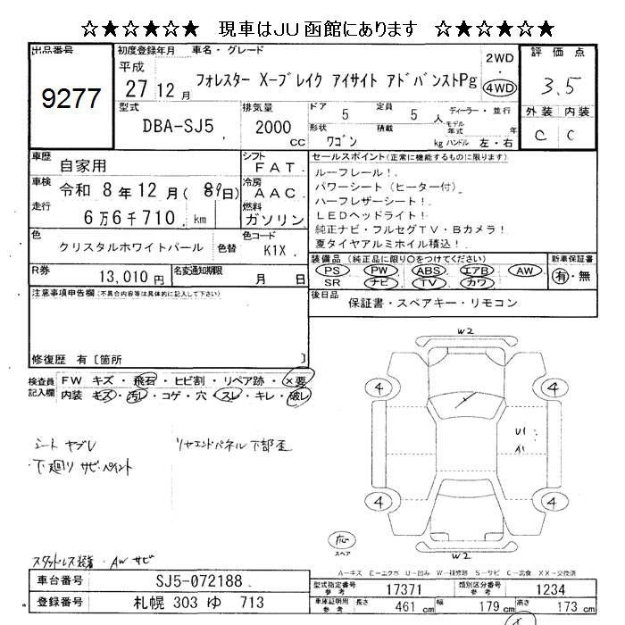 SUBARU FORESTER 2015 г., лот № 9277