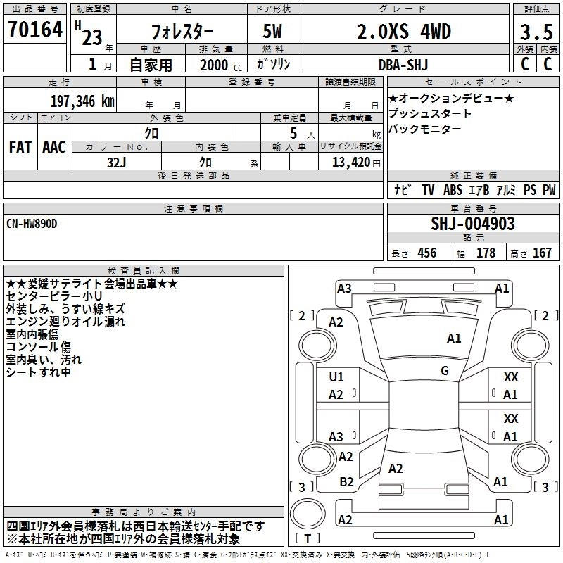 SUBARU FORESTER 2011 г., лот № 70164