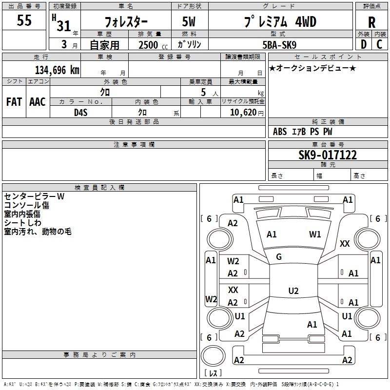 SUBARU FORESTER 2019 г., лот № 55