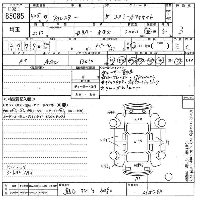 SUBARU FORESTER 2013 г., лот № 85085