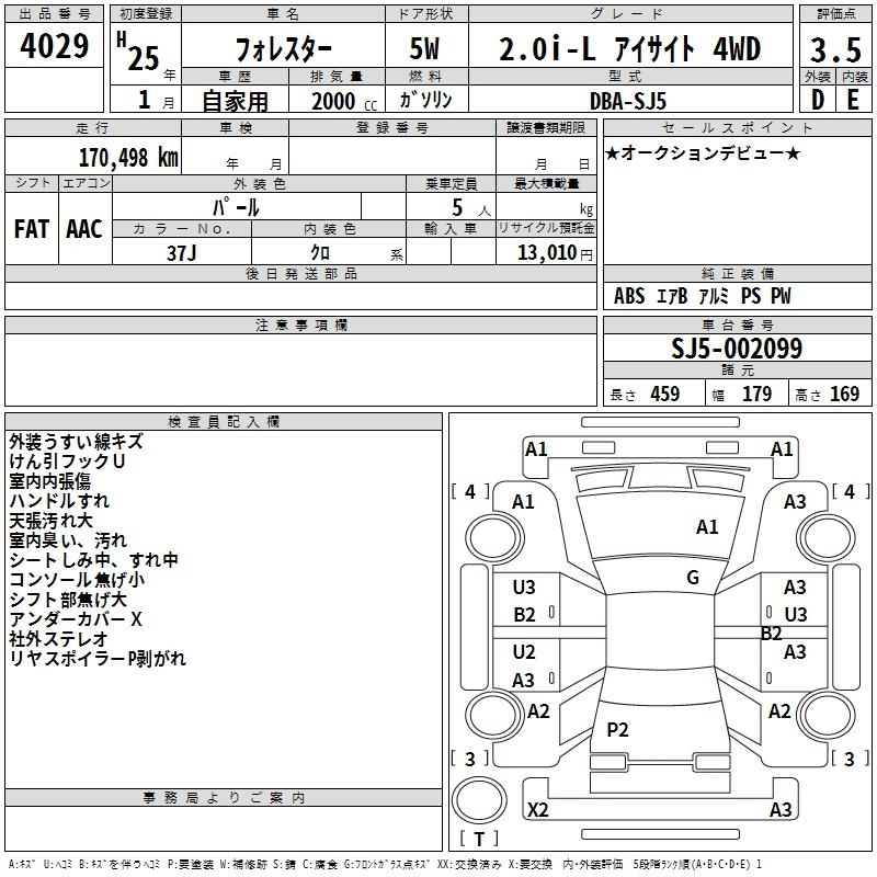 Год выпуска2013 Пробег 170 000 км КузовSJ5 Комплектация2.0I-L EYESIGHT 4WD