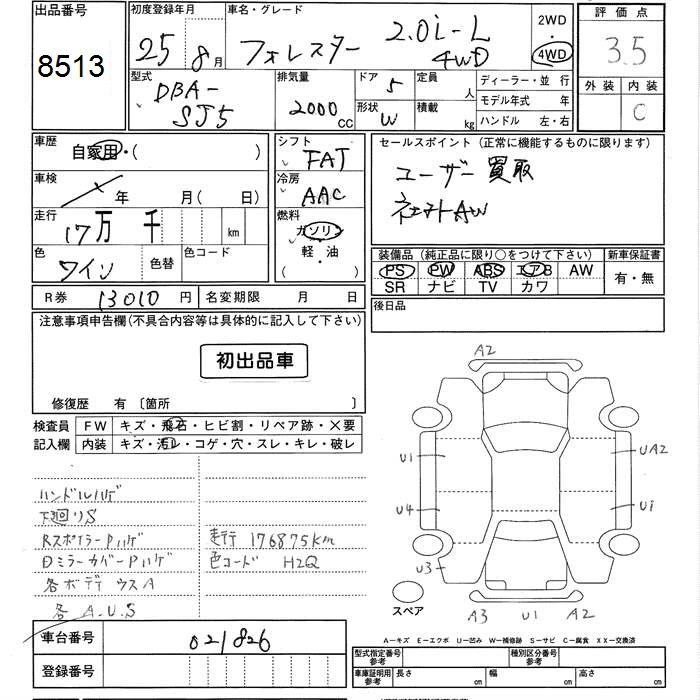 SUBARU FORESTER 2013 г., лот № 8513