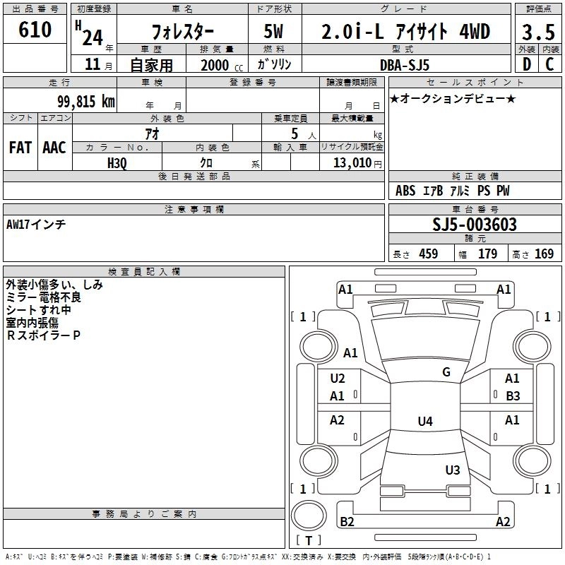 Год выпуска2012 Пробег 100 000 км КузовSJ5 Комплектация2.0I-L EYESIGHT 4WD