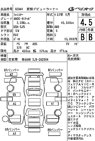 SUBARU FORESTER 2015 г., лот № 60044
