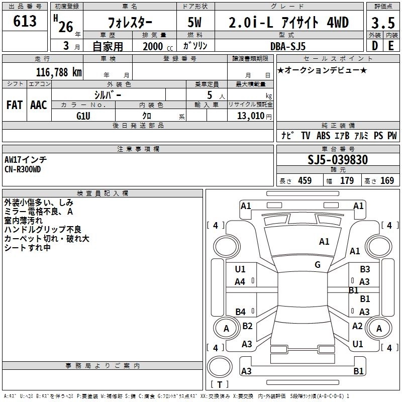Год выпуска2014 Пробег 117 000 км КузовSJ5 Комплектация2.0I-L EYESIGHT 4WD