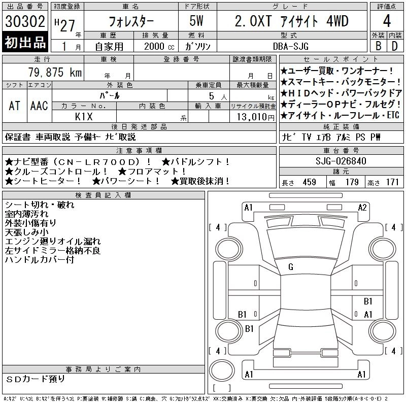 Статус выставлен на аукцион Лот 30302 Аукцион CAA Chubu Дата аукциона 11.03.2026