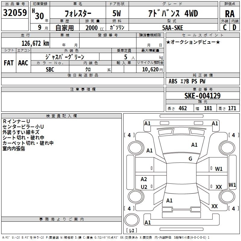SUBARU FORESTER 2018 г., лот № 32059