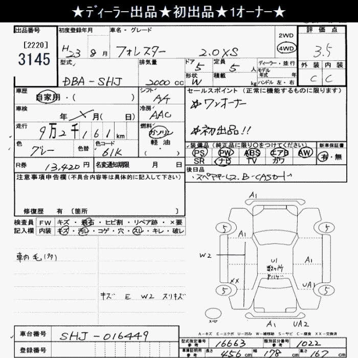 SUBARU FORESTER 2011 г., лот № 3145