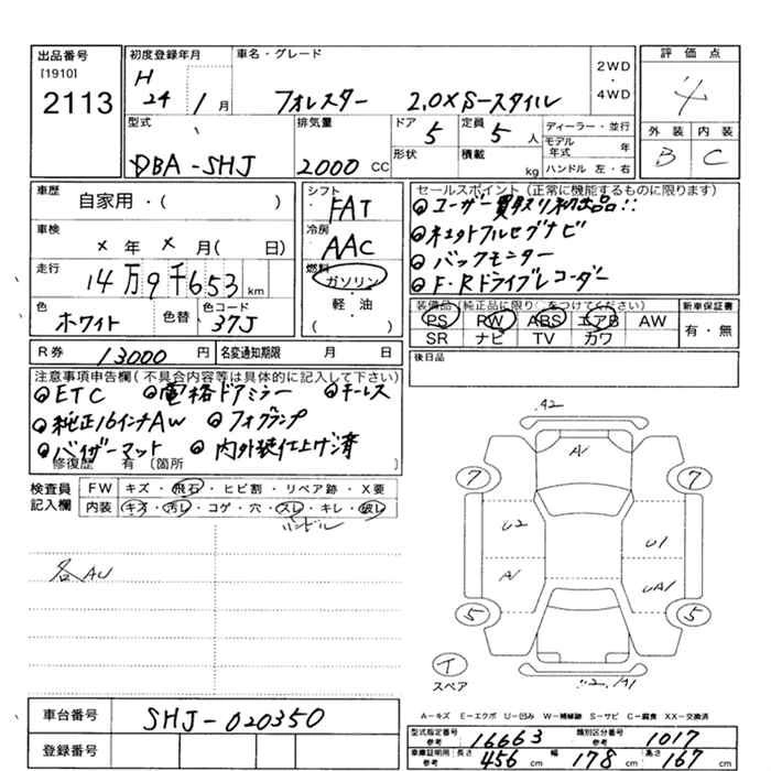 SUBARU FORESTER 2012 г., лот № 2113