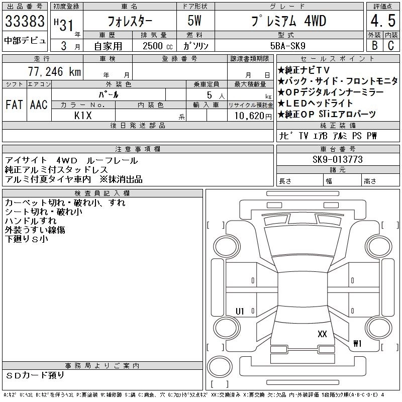 Год выпуска2019 Пробег 77 000 км КузовSK9 Комплектация PREMIUM 4WD