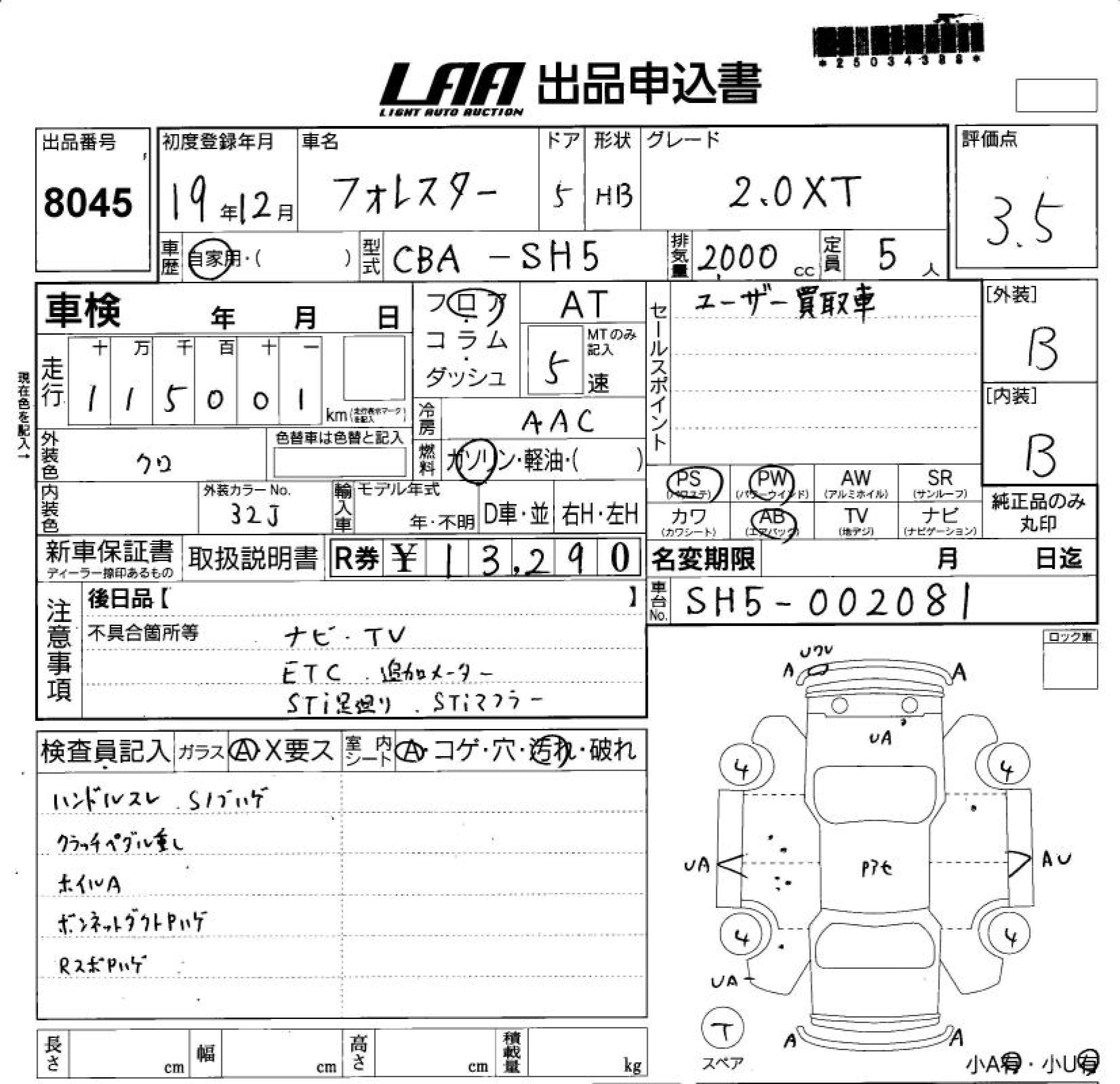 Статус выставлен на аукцион Лот 8045 Аукцион LAA Shikoku Дата аукциона 11.03.2026