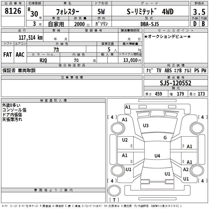 Статус выставлен на аукцион Лот 8126 Аукцион TAA Chubu Дата аукциона 12.03.2026