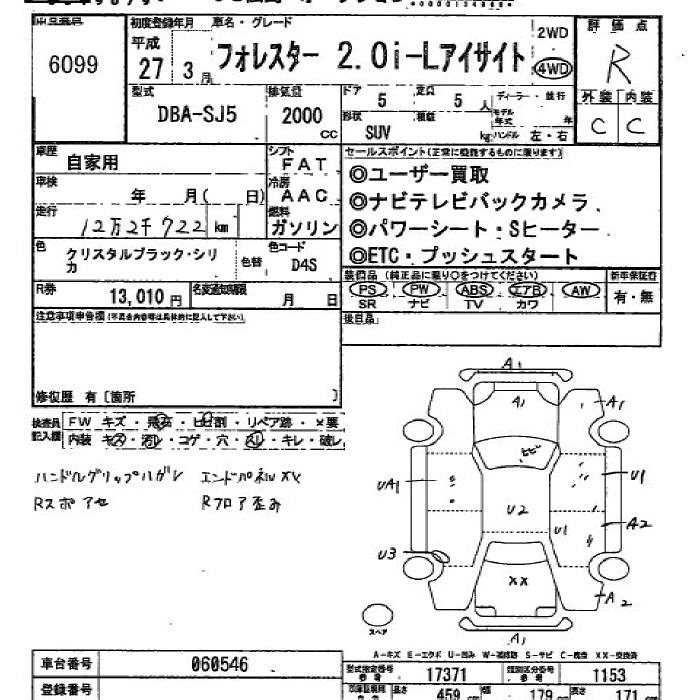 SUBARU FORESTER 2015 г., лот № 6099