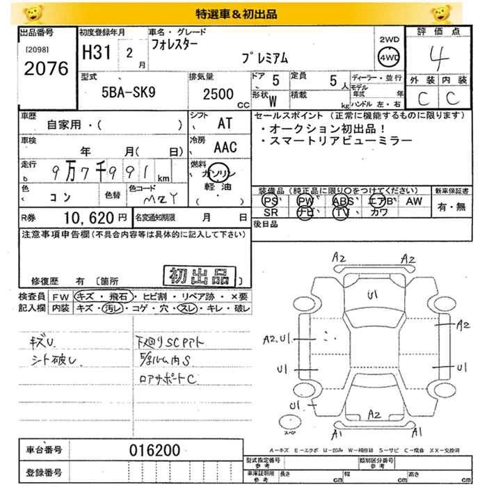 SUBARU FORESTER 2019 г., лот № 2076
