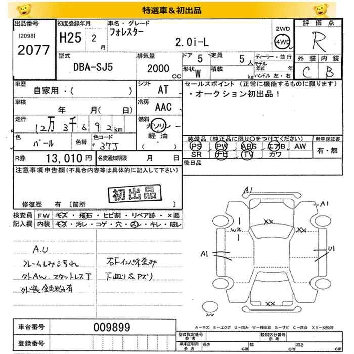 SUBARU FORESTER 2013 г., лот № 2077