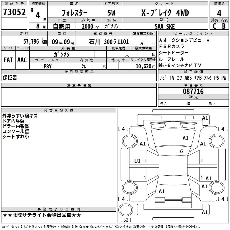 Статус выставлен на аукцион Лот 73052 Аукцион TAA Chubu Дата аукциона 12.03.2026