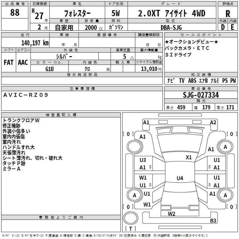 SUBARU FORESTER 2015 г., лот № 88