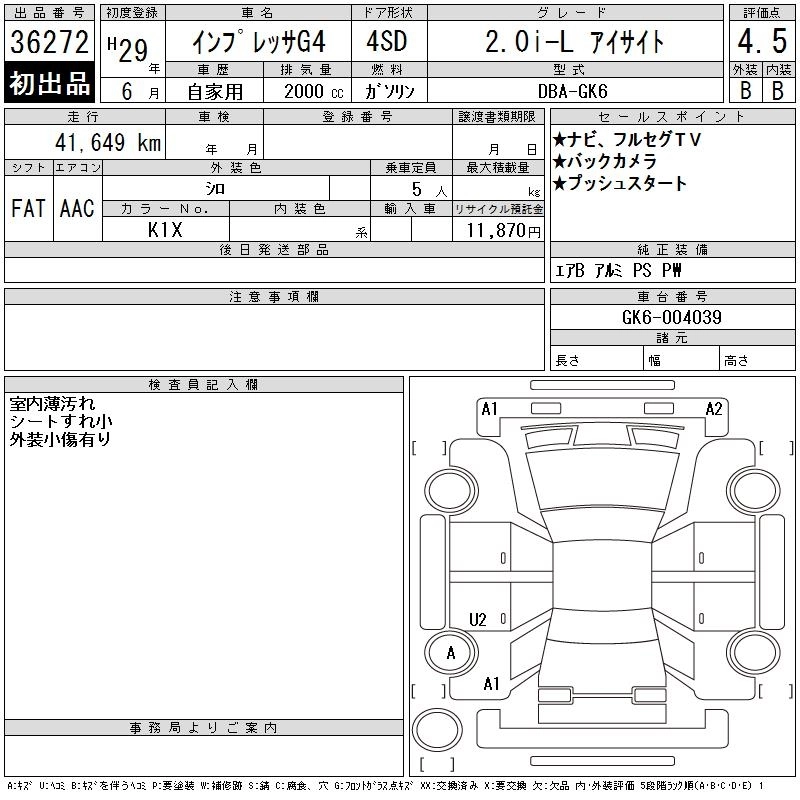 SUBARU IMPREZA G4 2017 г., лот № 36272