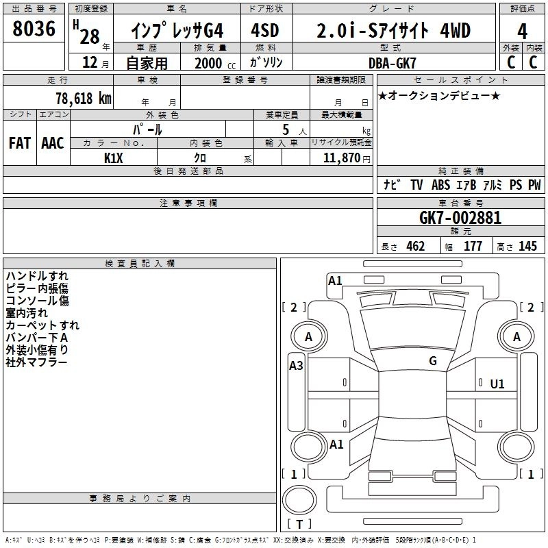 SUBARU IMPREZA G4 2016 г., лот № 8036