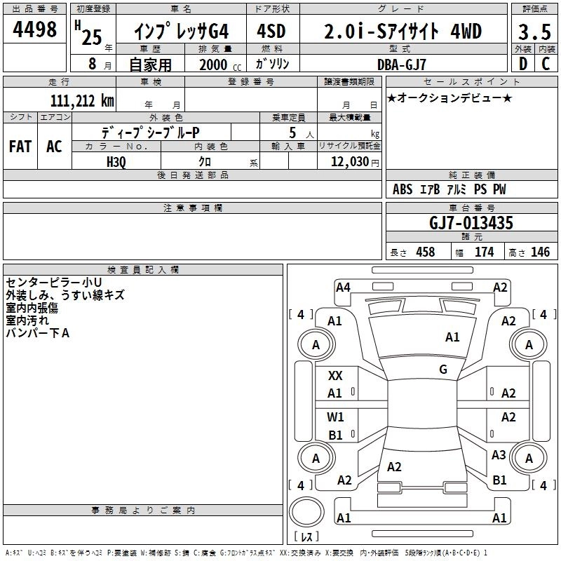 SUBARU IMPREZA G4 2013 г., лот № 4498