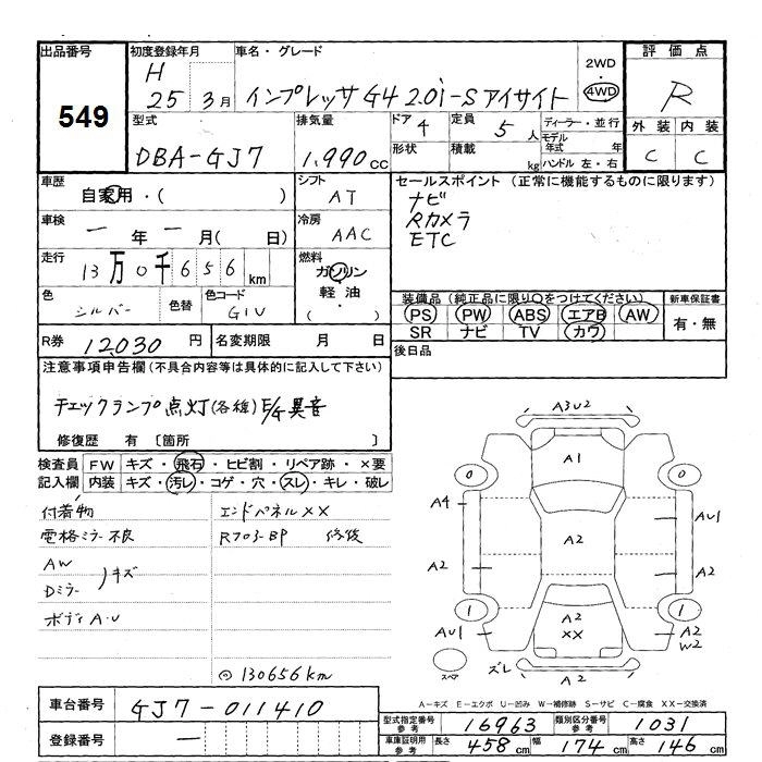 SUBARU IMPREZA G4 2013 г., лот № 549