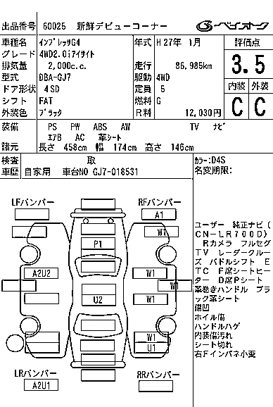 SUBARU IMPREZA G4 2015 г., лот № 60025
