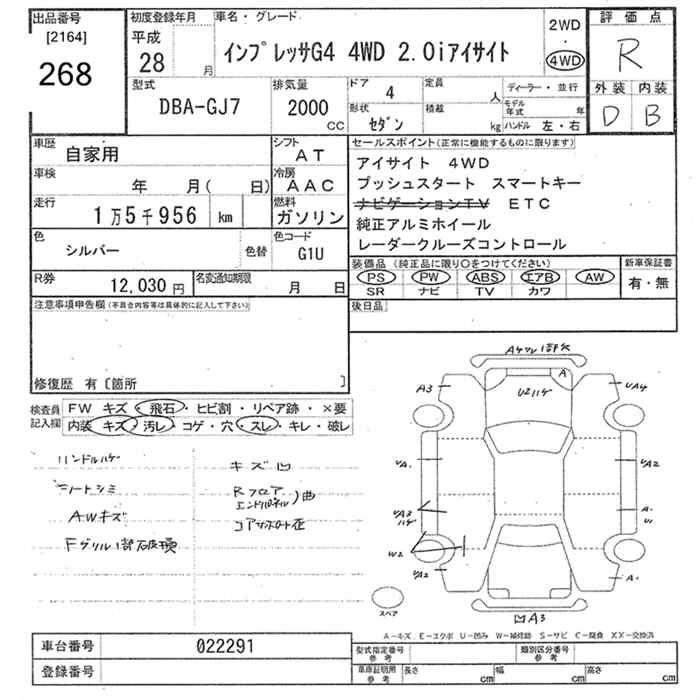 SUBARU IMPREZA G4 2016 г., лот № 268