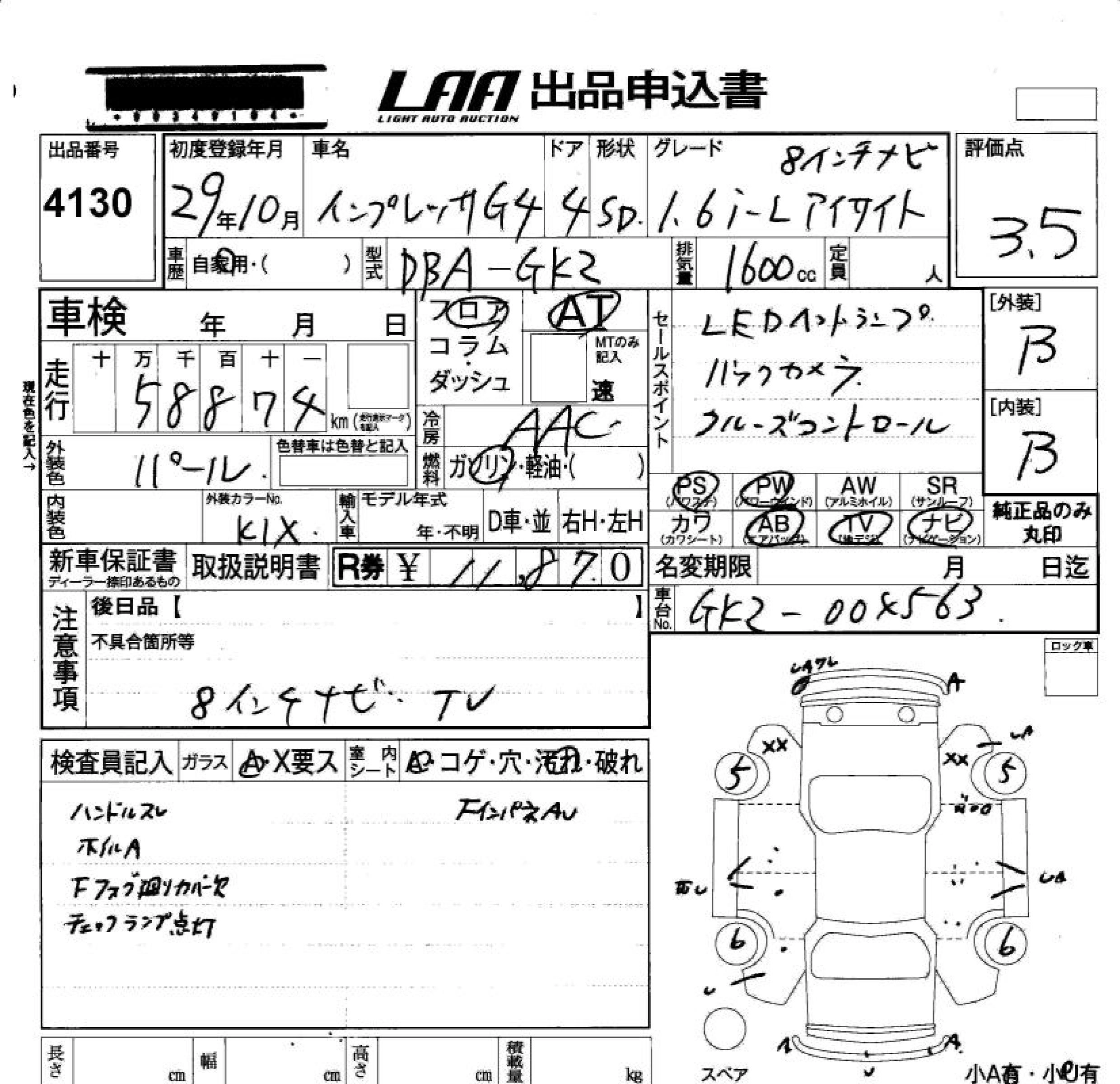 Статус не продан Лот 4130 Аукцион LAA Okayama Дата аукциона 23.01.2026