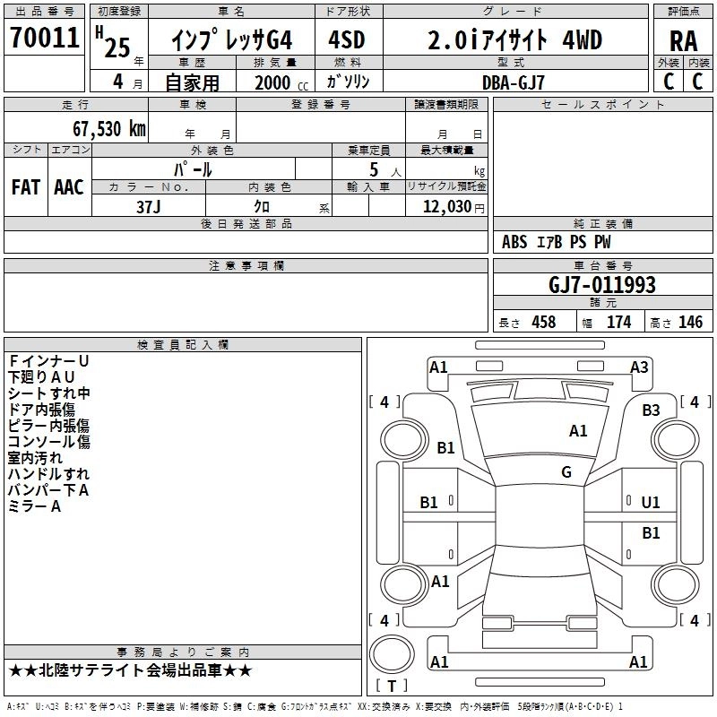 SUBARU IMPREZA G4 2013 г., лот № 70011