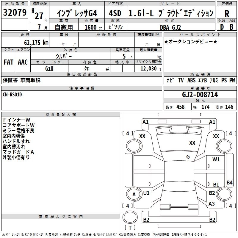 SUBARU IMPREZA G4 2015 г., лот № 32079