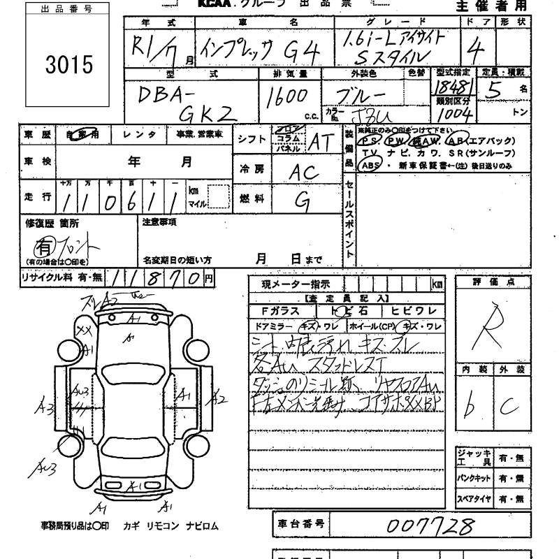 SUBARU IMPREZA G4 2019 г., лот № 3015