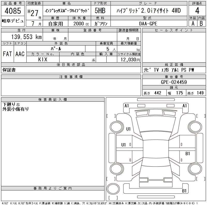 SUBARU IMPREZA SPORT HYBRID 2015 г., лот № 4085