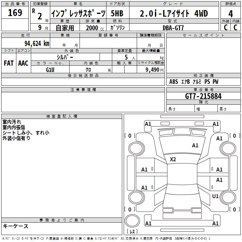 Год выпуска2020 Пробег 95 000 км КузовGT7 Комплектация2.0I-L EYESIGHT 4WD