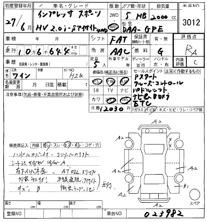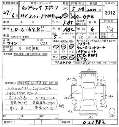 SUBARU IMPREZA SPORT 2015 г., лот № 3012