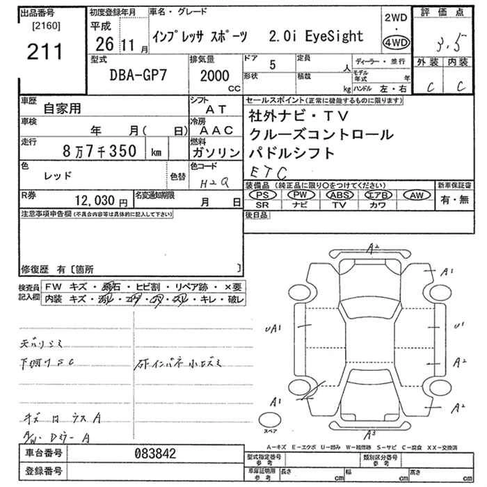 Год выпуска2014 Пробег 87 000 км КузовGP7 Комплектация4WD 2.0I EYESIGHT