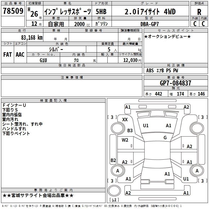 SUBARU IMPREZA SPORT 2014 г., лот № 78509
