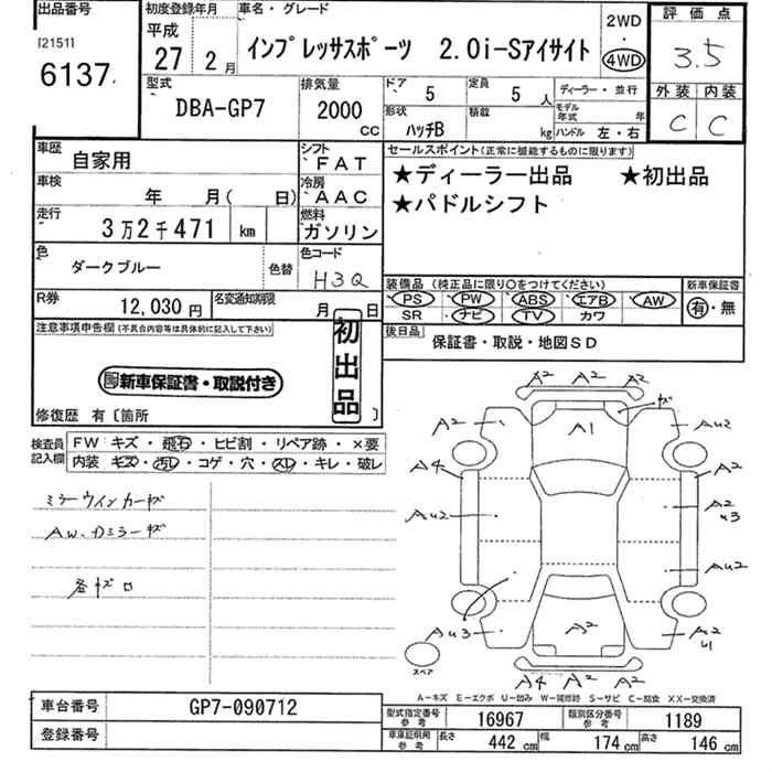 Год выпуска2015 Пробег 32 000 км КузовGP7 Комплектация4WD 2.0I-S EYESIGHT