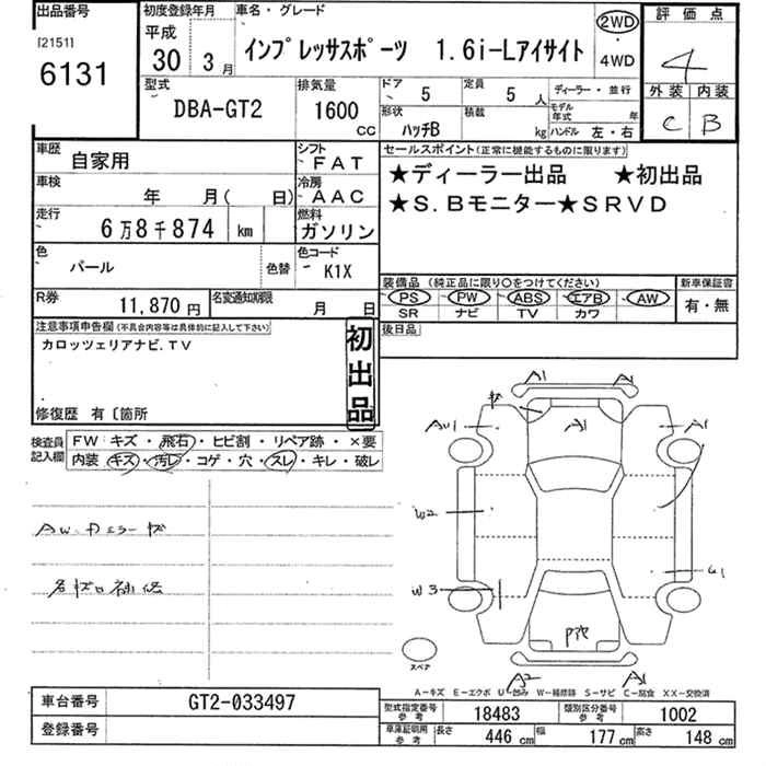 SUBARU IMPREZA SPORT 2018 г., лот № 6131