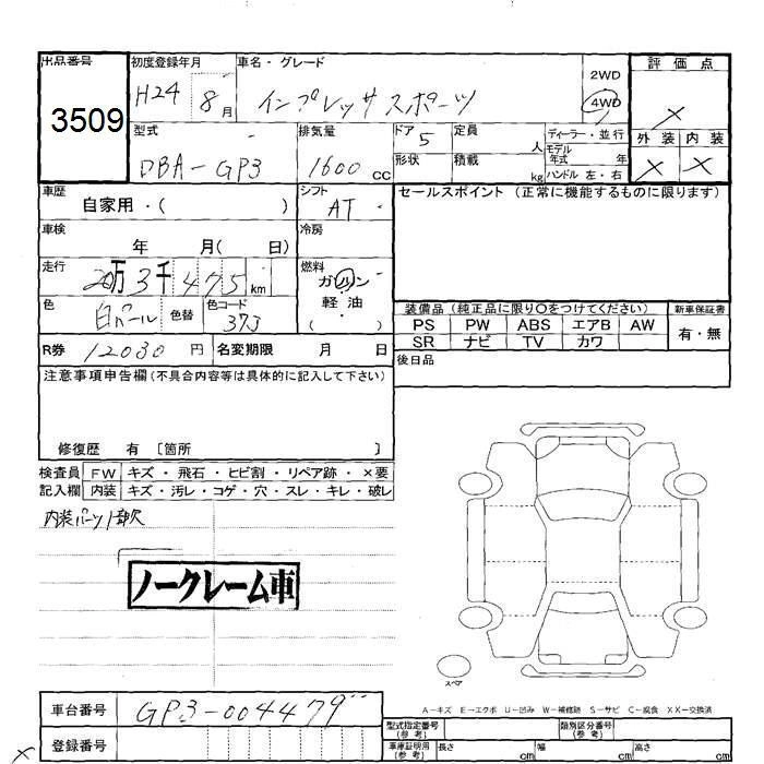 SUBARU IMPREZA SPORT 2012 г., лот № 3509