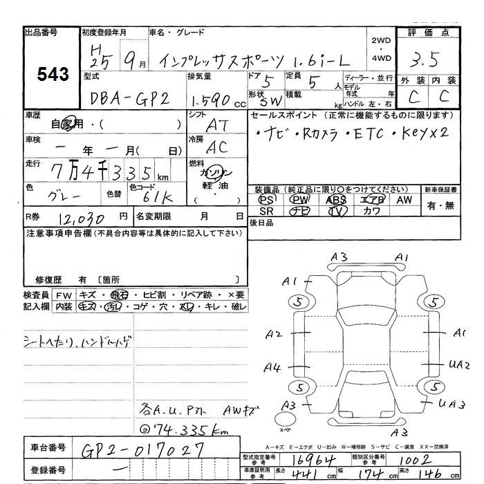 SUBARU IMPREZA SPORT 2013 г., лот № 543